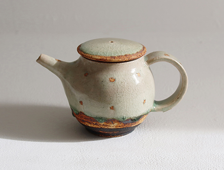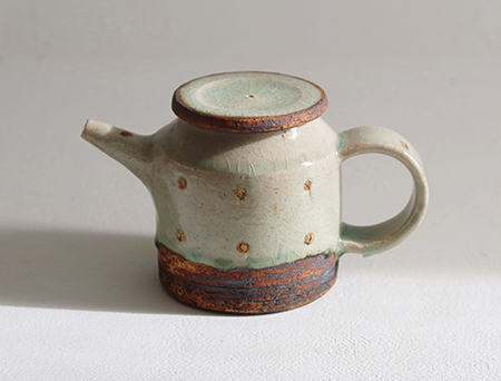 灰釉 ドット紋筒型ポット