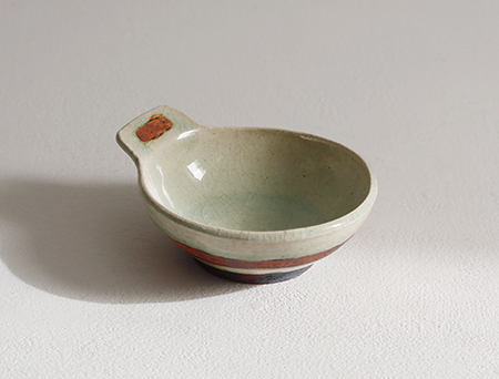 灰釉手付きスープボウル