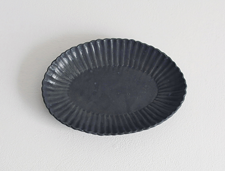 鉄釉 7.5寸楕円輪花深皿
