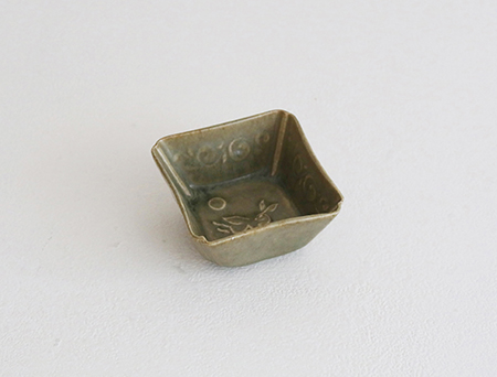 緑淡釉兎文隅入鉢(小)