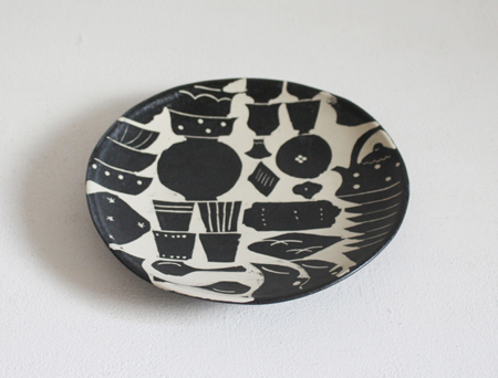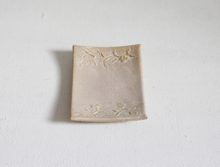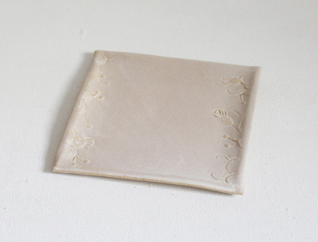 白化粧はりつけはがき皿・はりつけ角皿・モノクロプレート うつわ