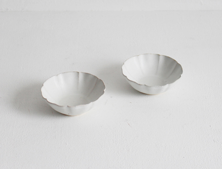 白釉輪花豆鉢・白釉鎬輪花丸皿・白釉すずらん豆鉢