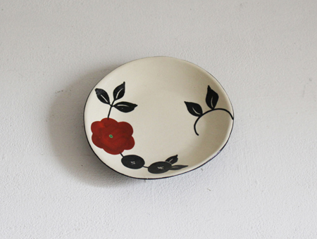 モノクロ皿 椿・赤花小皿・赤花めしわん